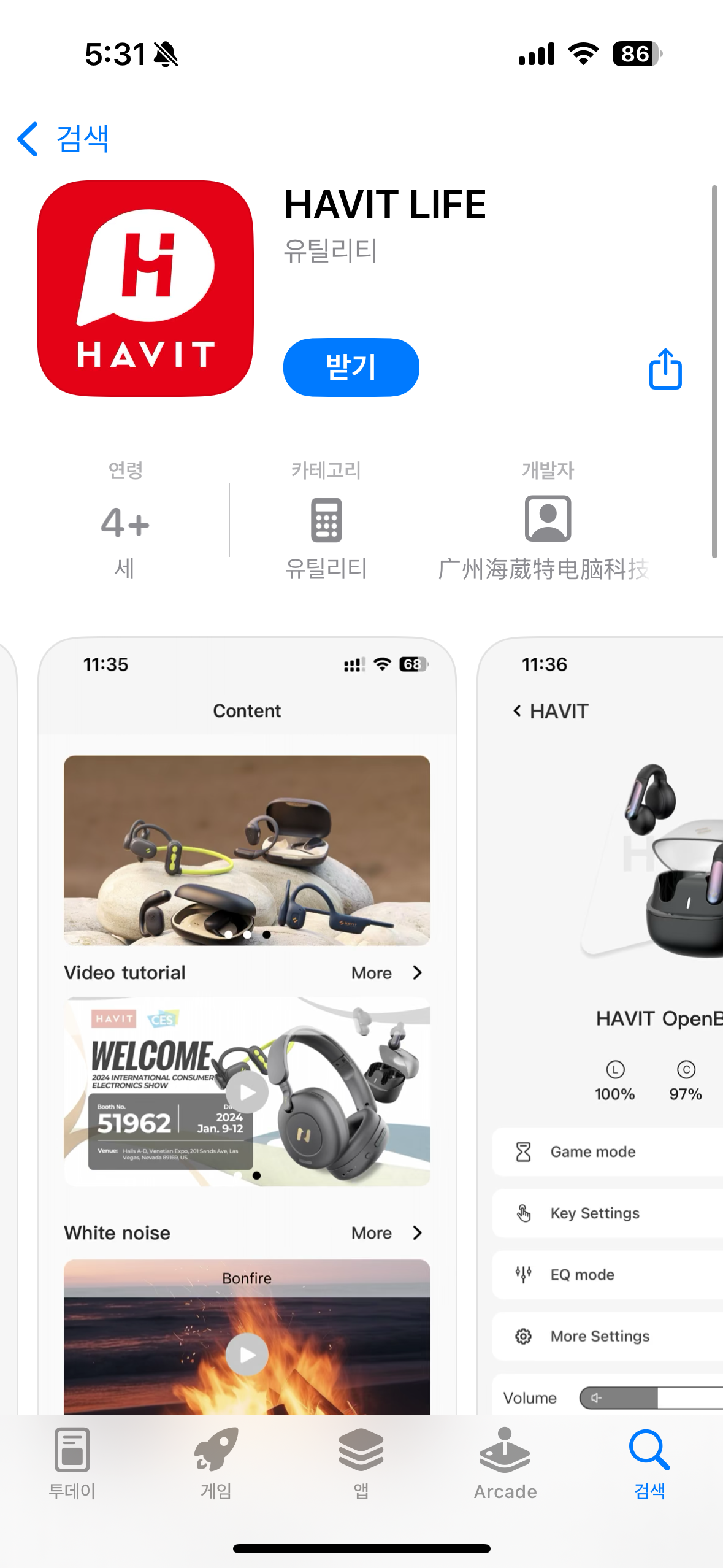 HAVIT LIFE 이 앱을 통해 이어폰을 컨트롤 할수 있습니다.